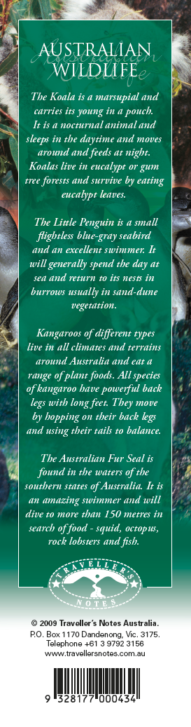 A collection of bookmarks featuring Australian animal wildlife, central Australia, the Grampians and the Great Ocean Road.