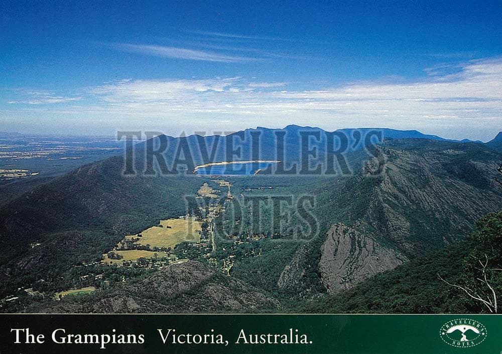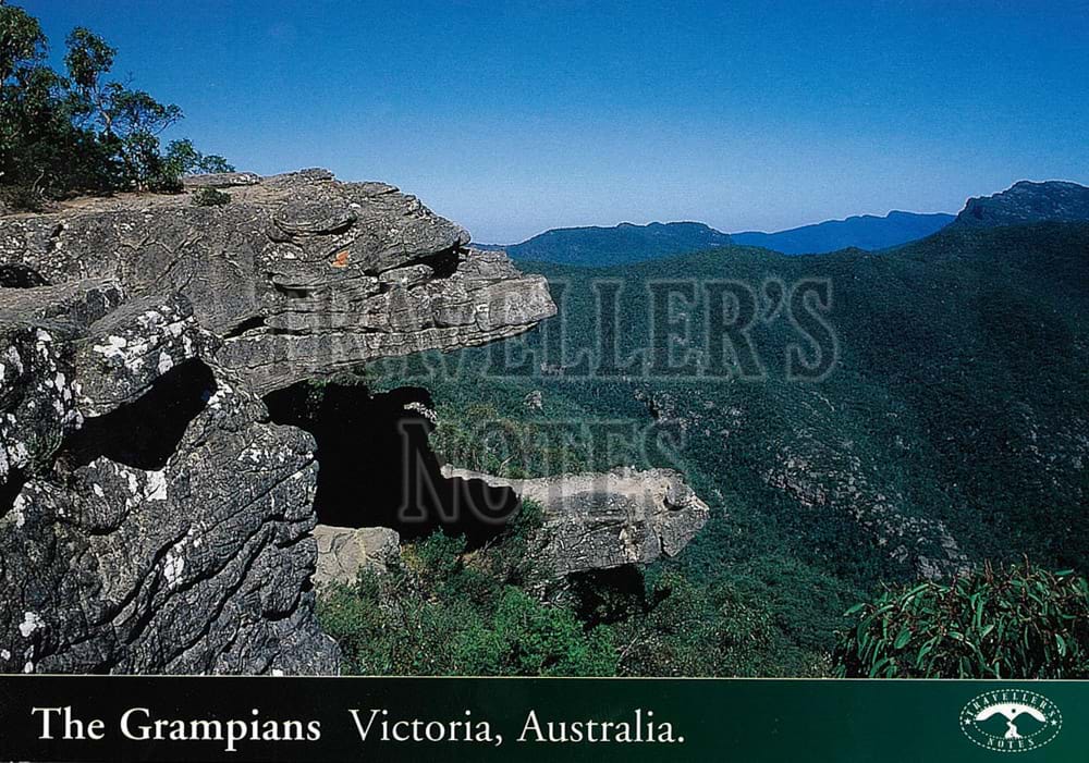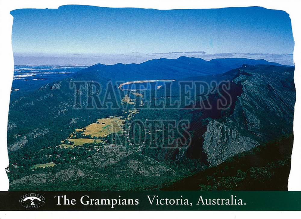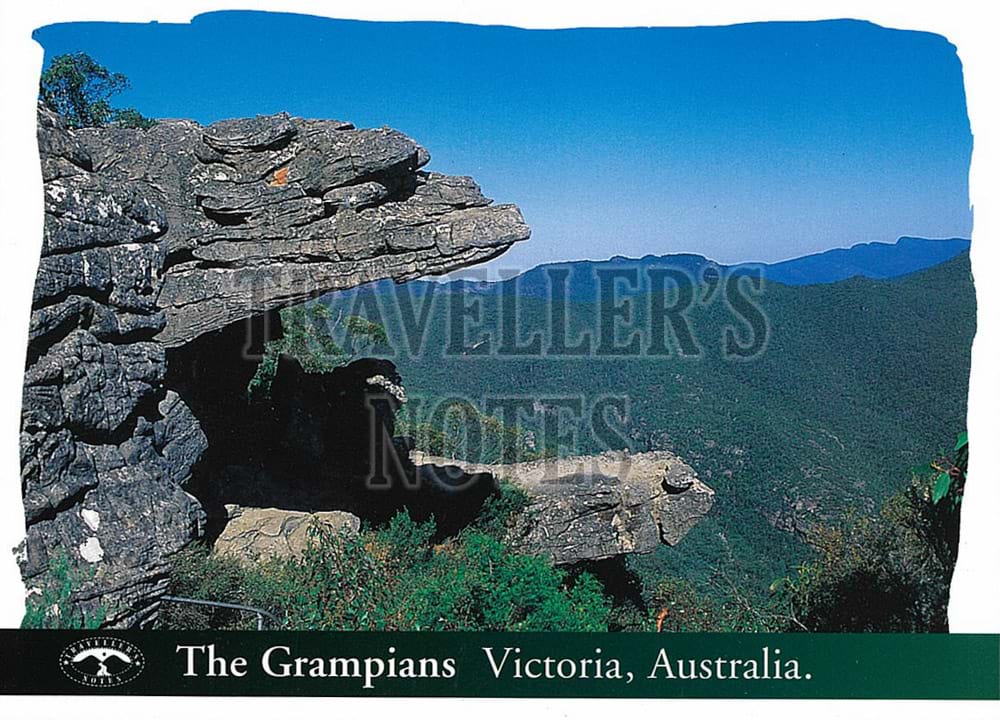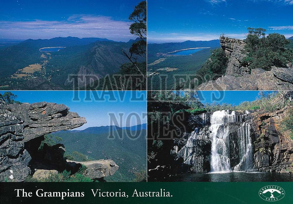 Post cards of the Grampians region of Victoria, Australia. The Grampians National Park runs 100km in length and covers 167,000 hectares in area. The Grampians essentially comprise three dramatic ridges of weathered sandstone thrust upwards to 1,000 metres above the surrounding plains.