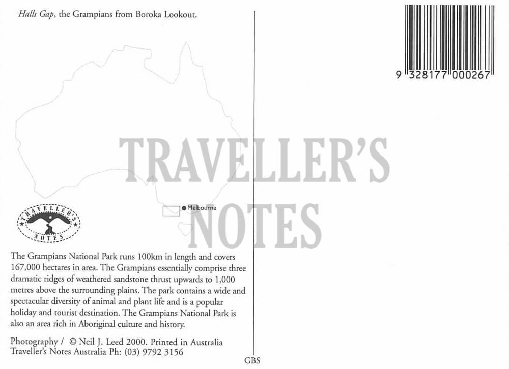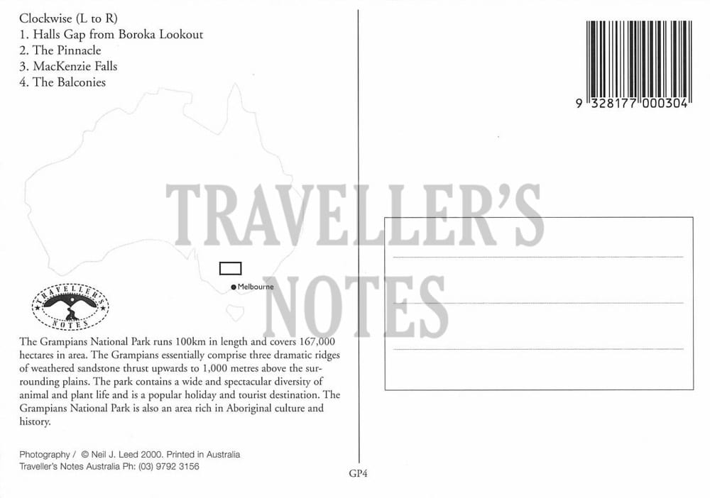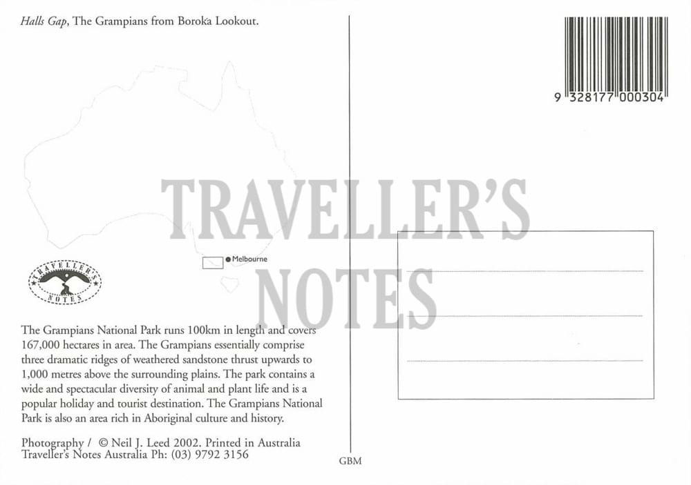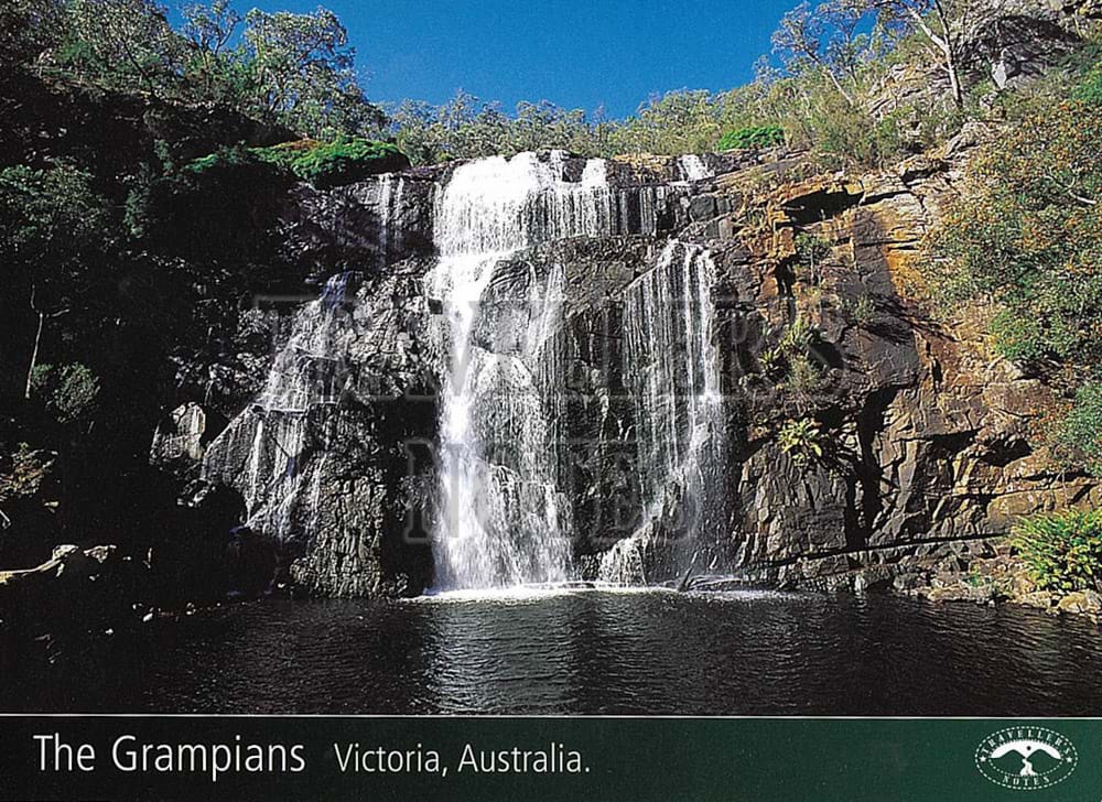 Post cards of the Grampians region of Victoria, Australia. The Grampians National Park runs 100km in length and covers 167,000 hectares in area. The Grampians essentially comprise three dramatic ridges of weathered sandstone thrust upwards to 1,000 metres above the surrounding plains.