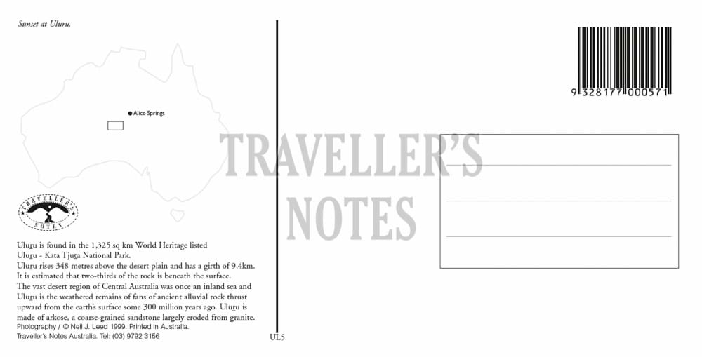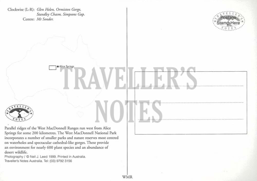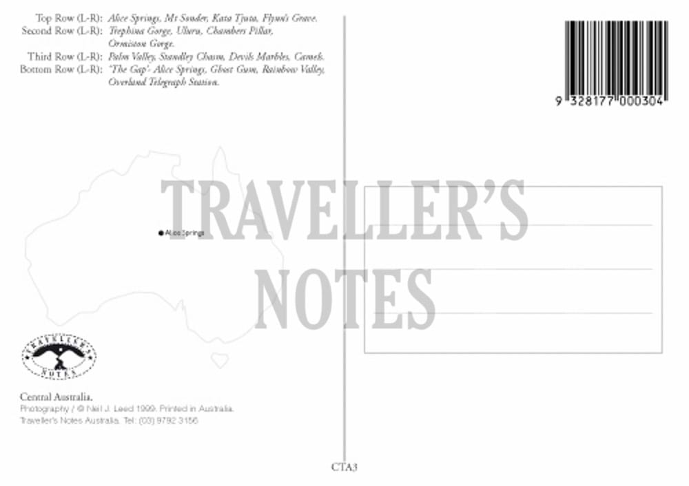 Post cards (120mm x 170mm) showing various features of the region of central Australia.