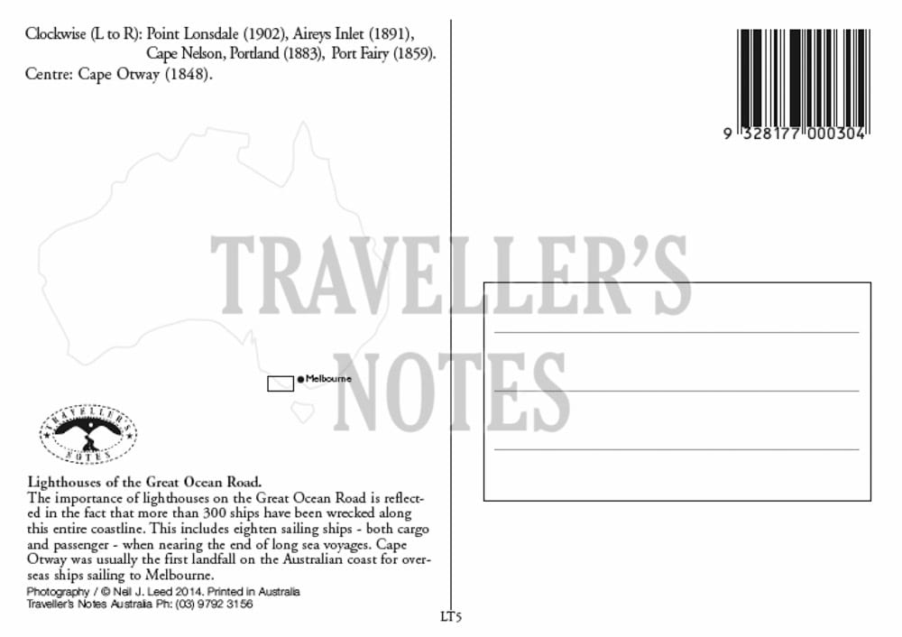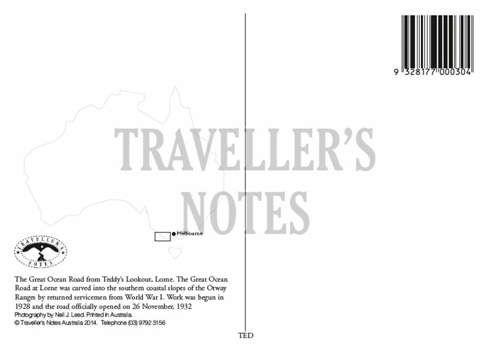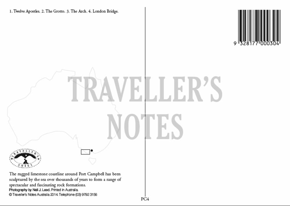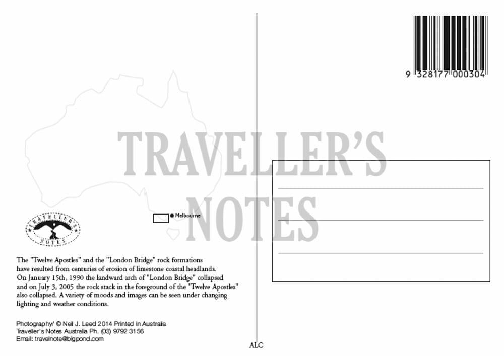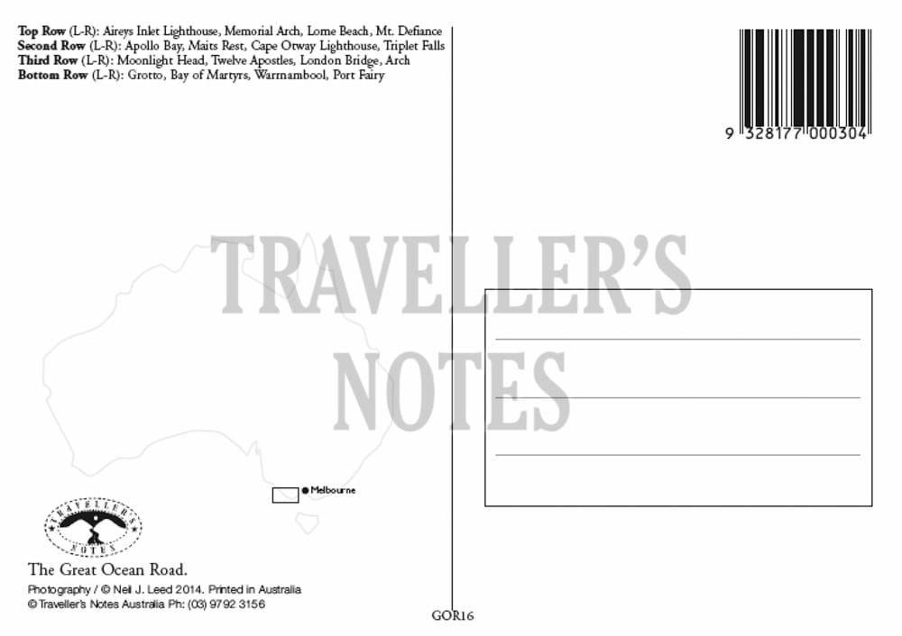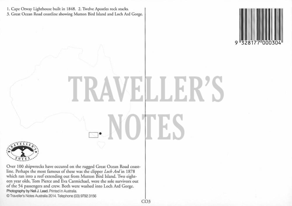 Post cards (120mm x 170mm) featuring various aspects of the Great Ocean Road, Victoria, Australia.